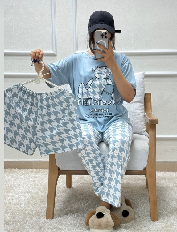 ست تیشرت شلوار شلوارک زنانه طرح خرس زبرا جنس نخ پنبه وارداتی