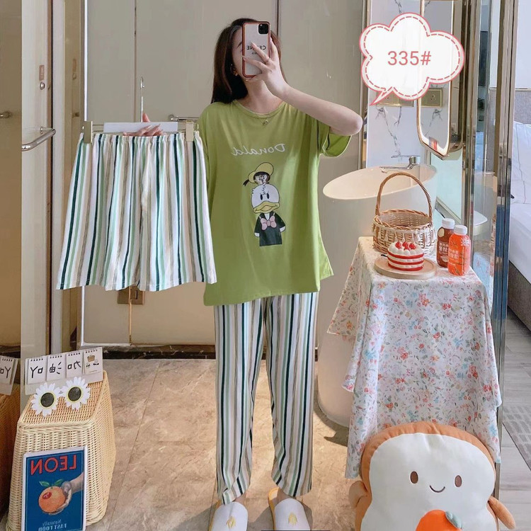 ست بلوز شلوار شلوارک زنانه مدل اردک شلوار راه راه جنس نخ پنبه
